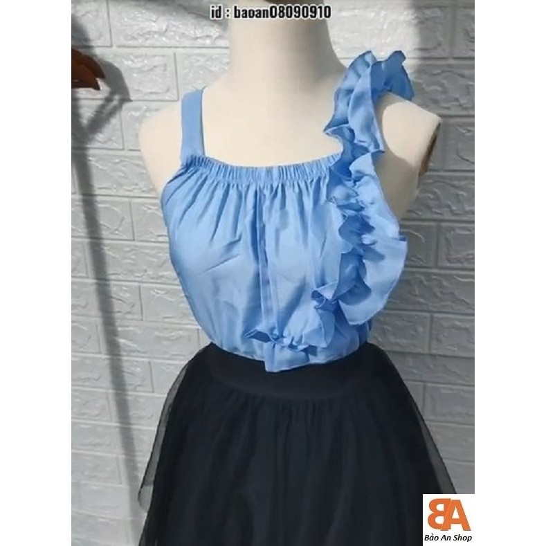 Áo 2 dây nữ kiểu phối bèo viền tiểu thư chất vải kate lụa FreeSize dưới 55kg