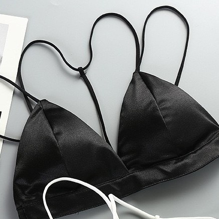 Áo Bra Phi Satin Cổ Chữ Y Quyến Rũ, Áo Lót Không Gọng Dây Mảnh Hai Màu [Ảnh Chụp Thật] - OB037