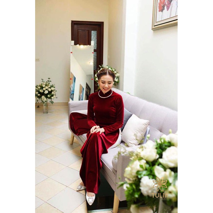 Áo dài nhung Đỏ Rượu Vang sang chảnh_đẹp xuất sắc người ơiii 🎶💃👏