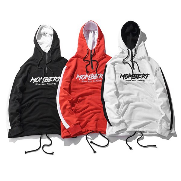 Áo Hoodie Mombert unisex tay sọc có nón chất nỉ bông - AHDT617A+B+C
