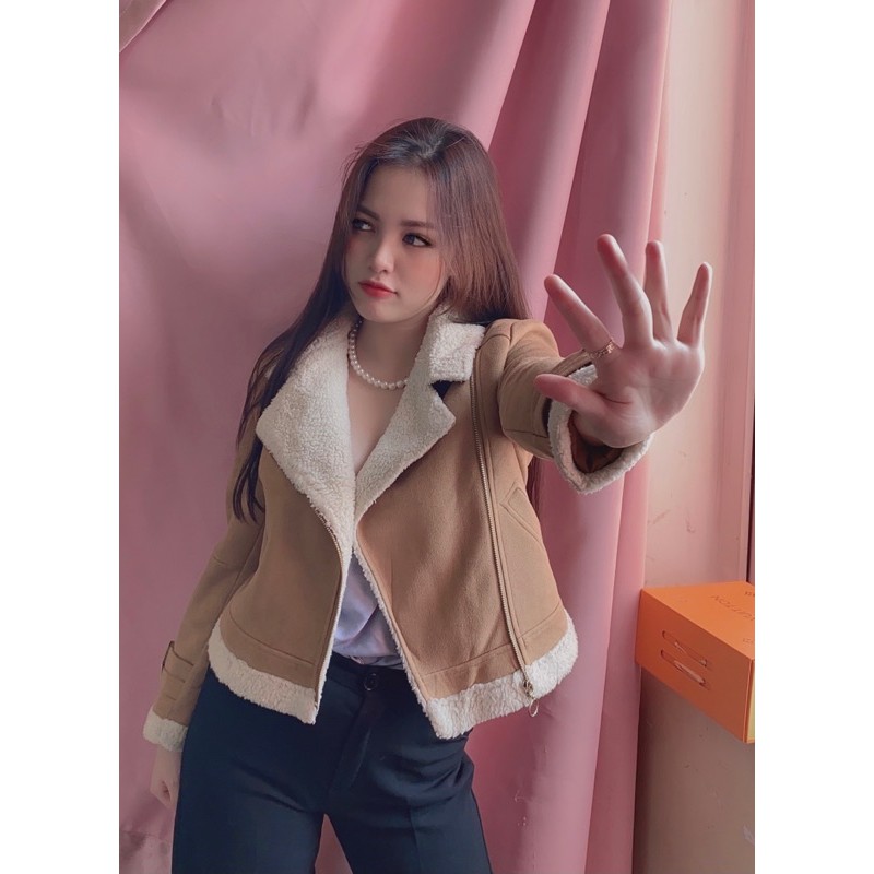 Áo khoác da lộn màu nâu