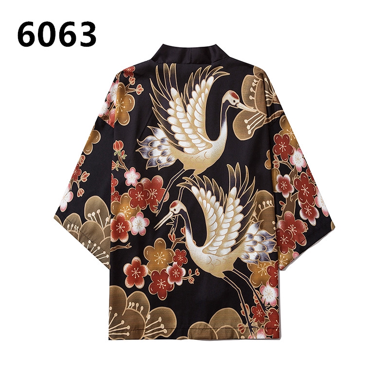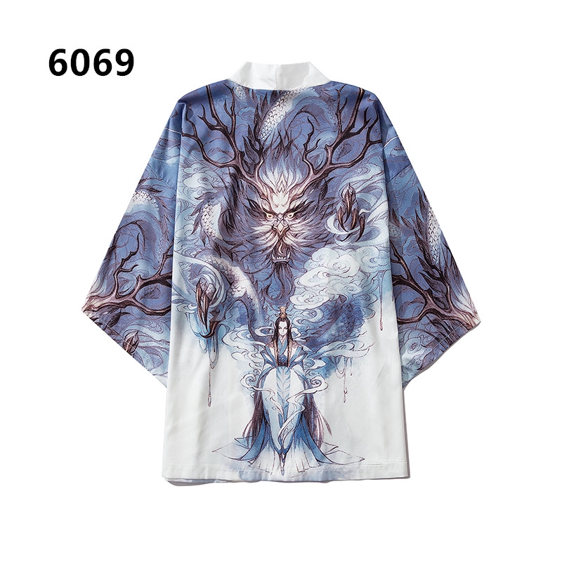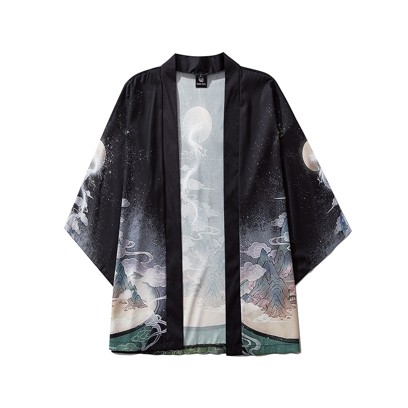 Áo Khoác Kimono Đen Dáng Rộng In Hình Rồng Thời Trang Cho Nam Nữ