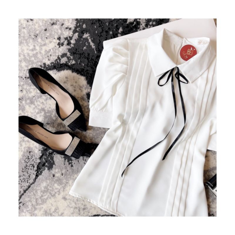 ÁO KIỂU MÀU TRẮNG NƠ ĐEN XINH - ÁO SƠ MI - ĐỒ CÔNG SỞ NGẮN TAY - KẾT HỢP QUẦN TÂY CHÂN VÁY - MẶC ĐI LÀM ĐI CHƠI ĐỀU ĐẸP