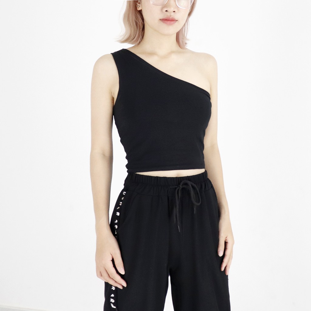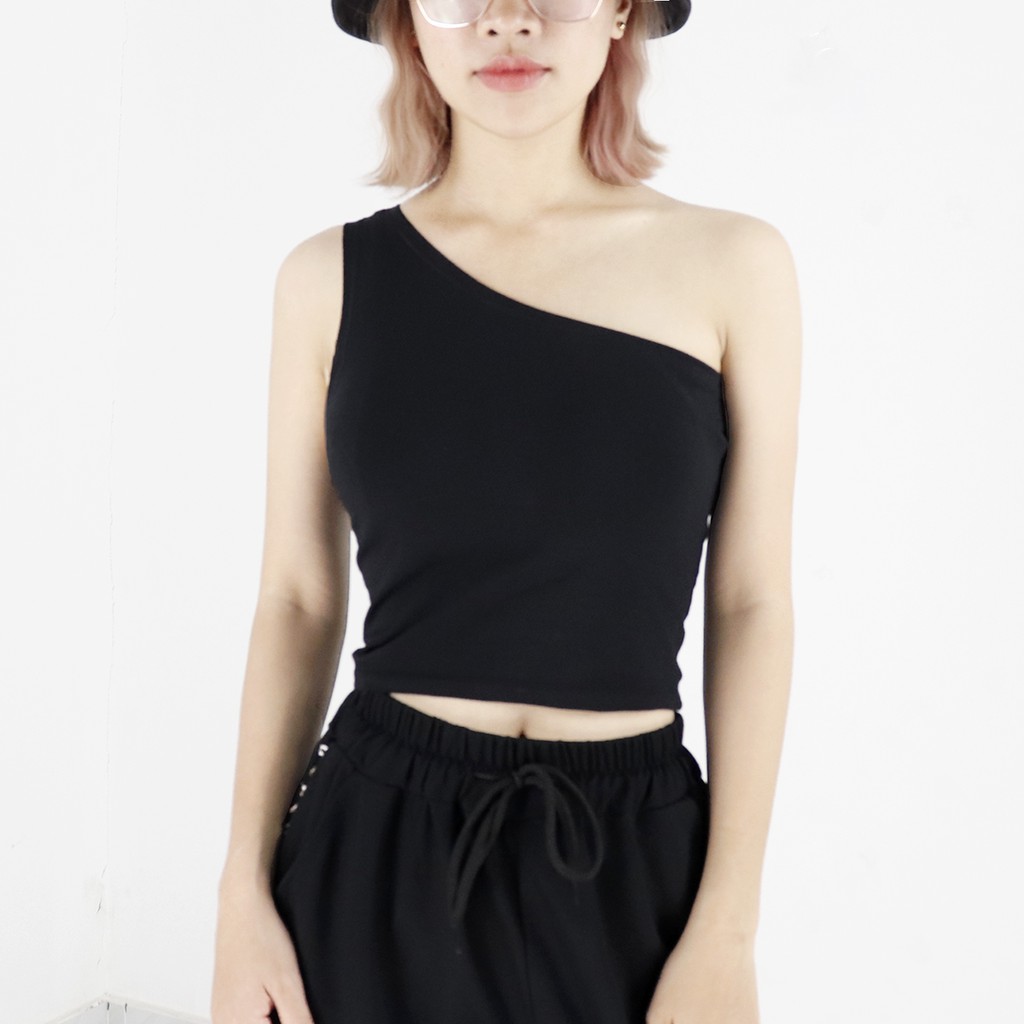 Áo lệch vai nữ kiểu dáng croptop thời trang Miix màu đen - MI001