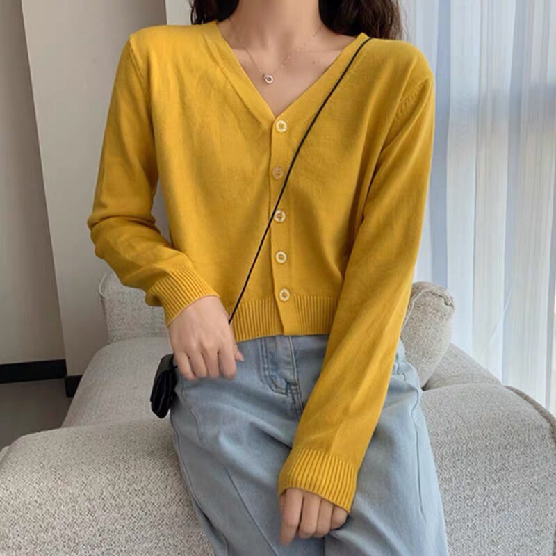 áo len khoác cardigan 5 khuy cài cổ tim (8A55#)