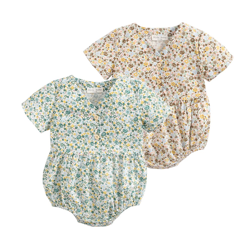 Áo liền quần Sanlutoz tay ngắn bằng cotton họa tiết hoa cho bé gái