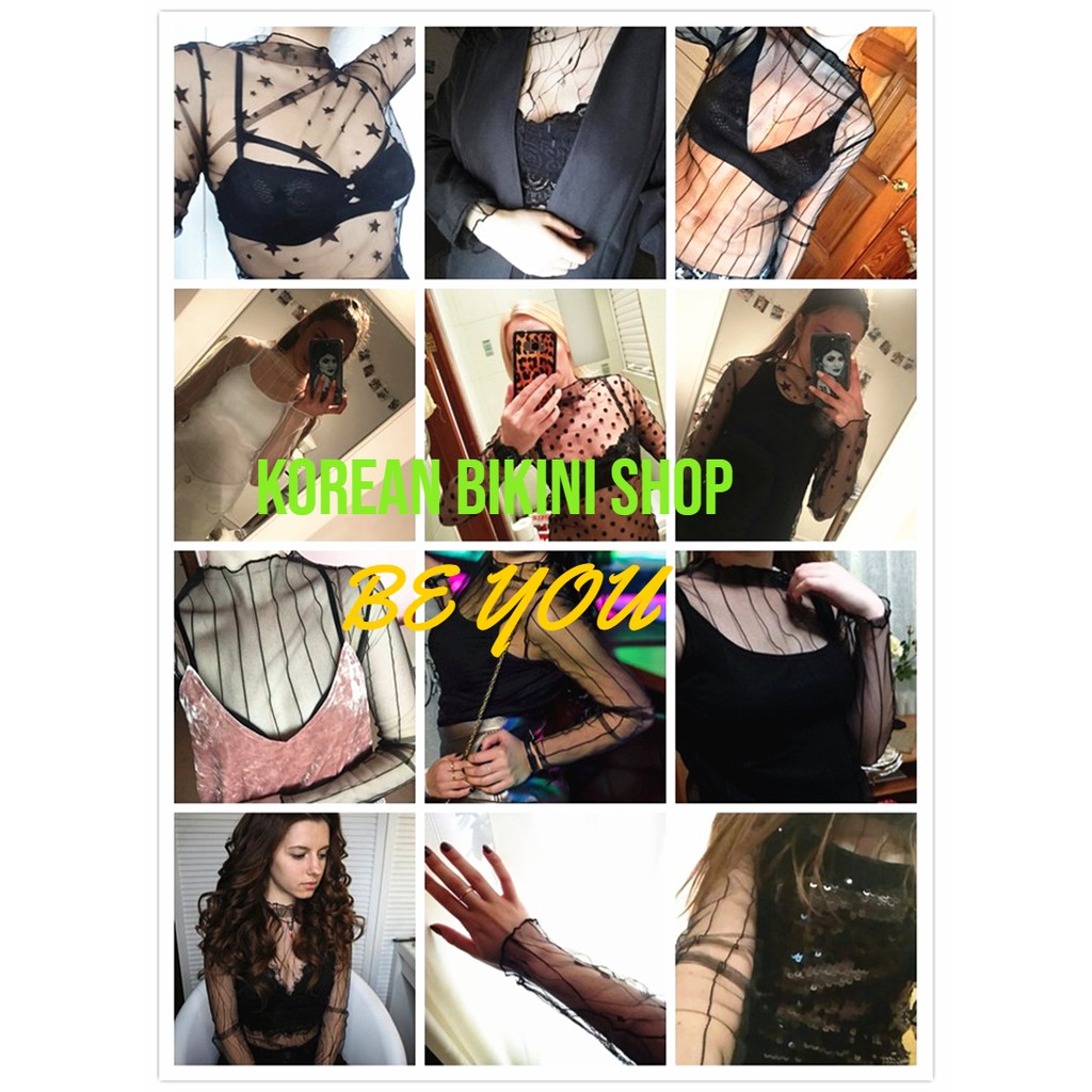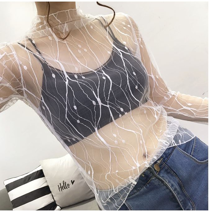 Áo lưới xuyên thấu tay dài quyến rũ dành cho nữ