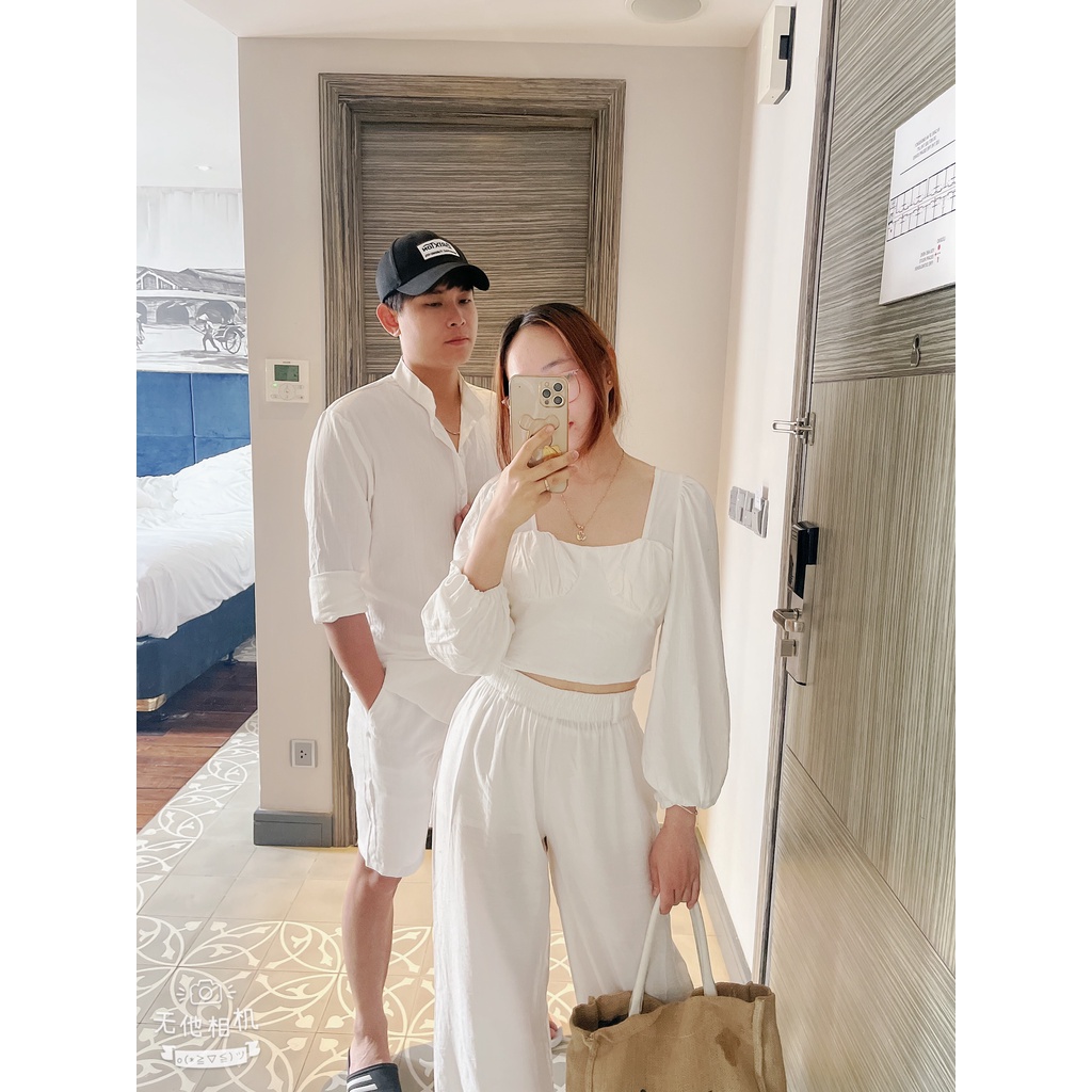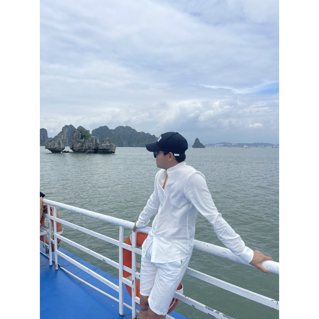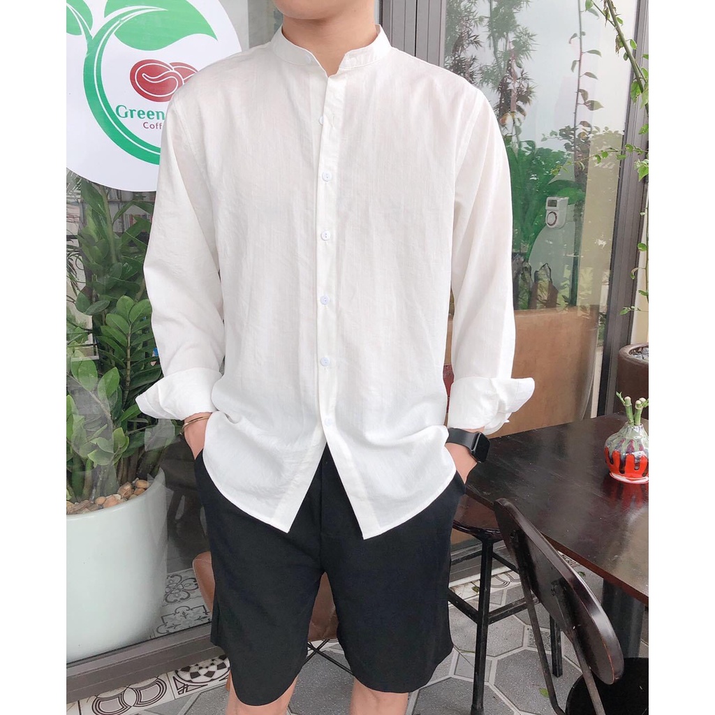 Áo sơmi quần đũi BAT STORE 1 bộ sơ mi cổ tàu dài tay kèm quần đen, trắng chất liệu vải đũi xước chuân đi biển
