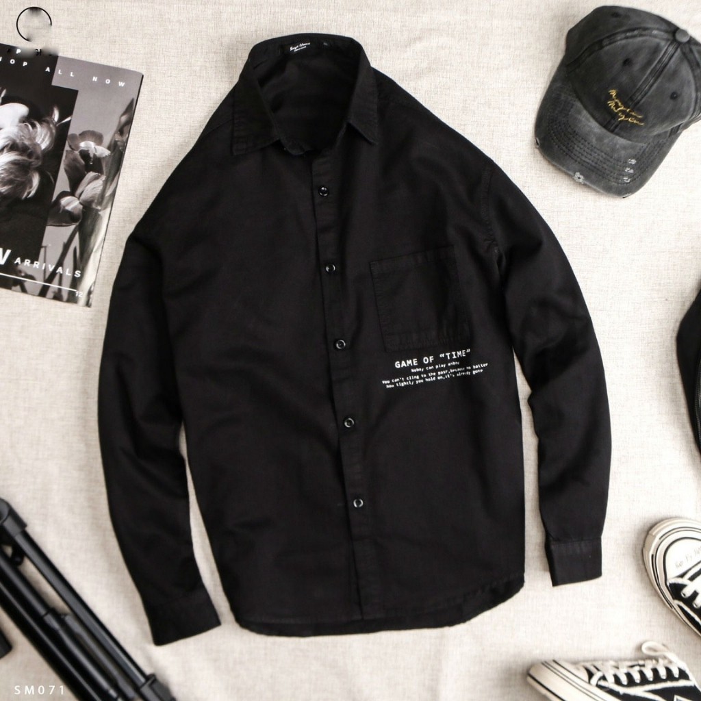 Áo Sơ Mi Nam Dài Tay Có Túi Phối Họa Tiết Chữ In Trước Sau Thời Trang Cao Cấp PONIVALAZA Cao Cấp