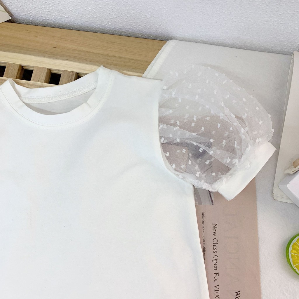 Ngọt Ngào Bé Gái Màu Trơn Lưới Áo Thun Tay Phồng Áo Mùa Hè Trẻ Em Bé Gái Công Chúa Áo