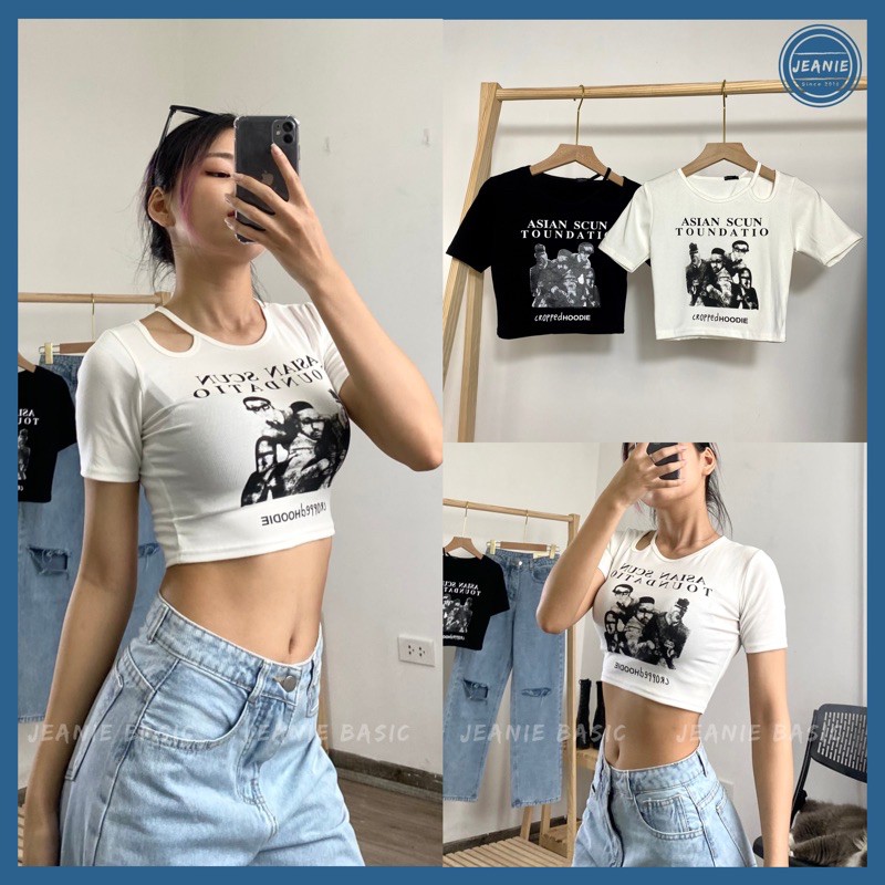 Áo thun croptop nữ JEANIE dáng ôm, in hình hiphop cá tính