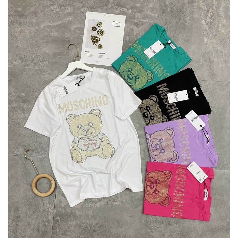 áo thun gấu moschino đinh đá cao cấp (hình thật)