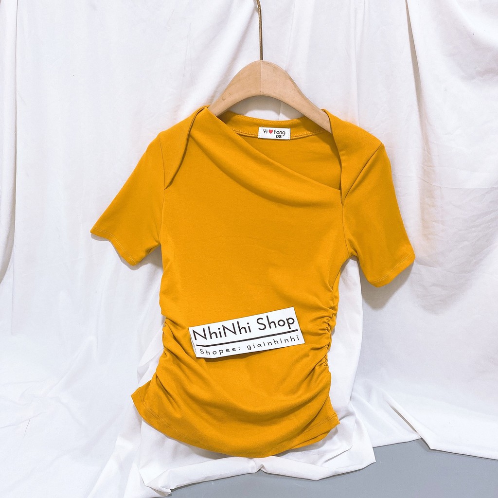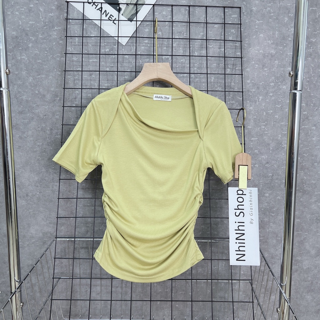 Áo thun kiểu khoét vai rúm 2 bên, Áo kiểu ngắn tay lệch vai CS1175 - NhiNhi Shop