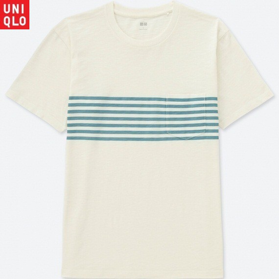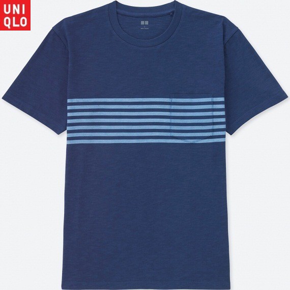 Áo thun nam Uniqlo 100% Supima cotton - Cổ tròn sọc có túi ngực (KOOL18)