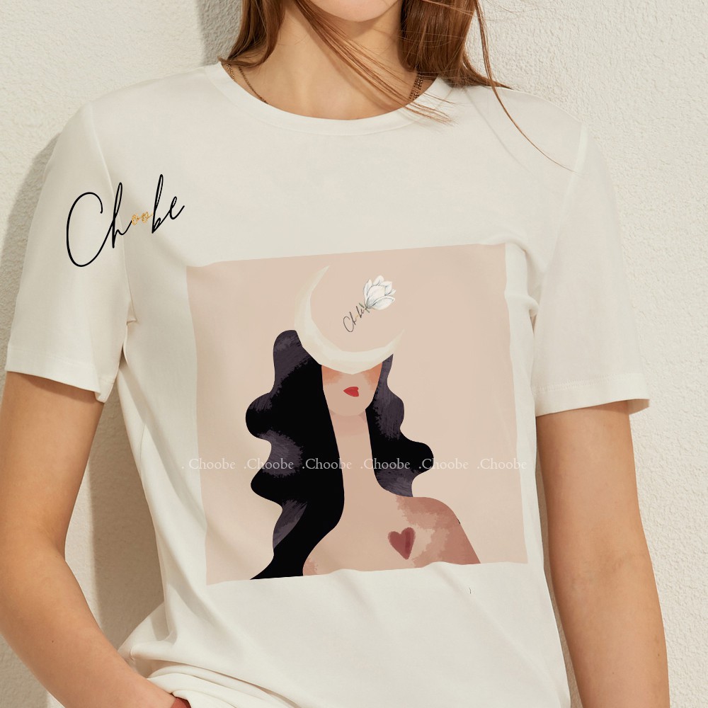 Áo phông nữ Choobe cộc tay Nguyệt Hoa Nữ form rộng kiểu in hình vải cotton cổ tròn đẹp t shirt Trắng A06