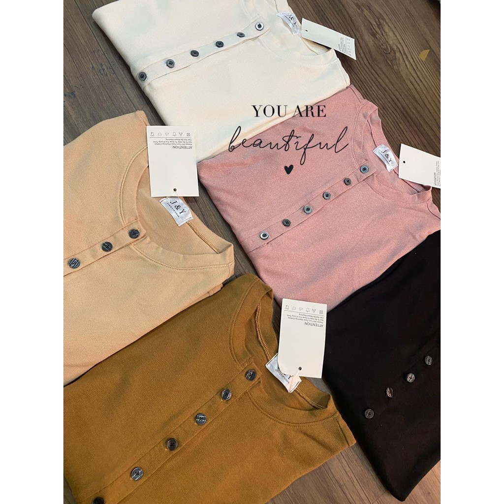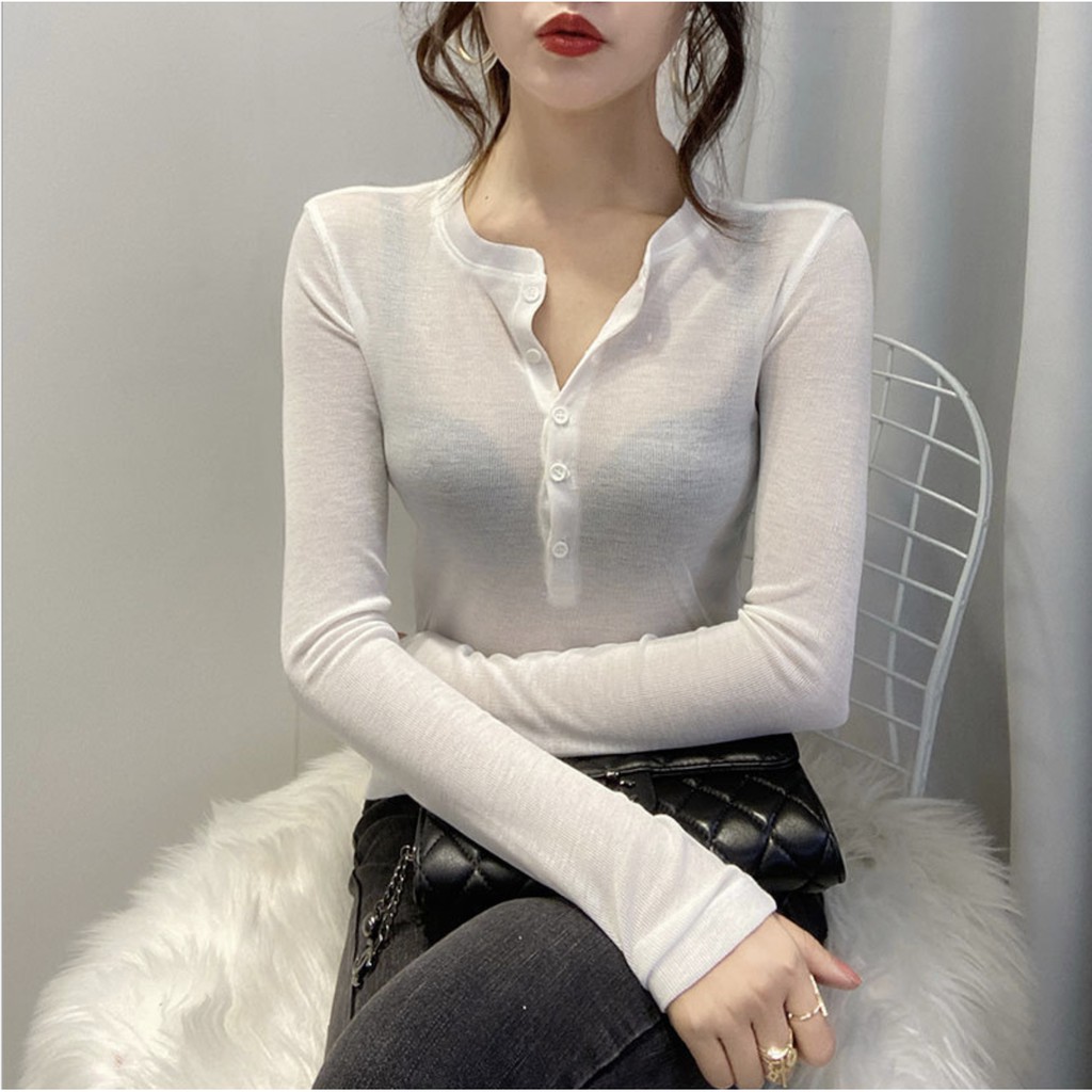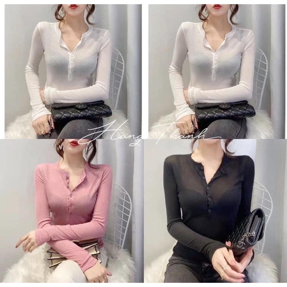 Áo Thun Xước Cúc Dọc VERTICAL Nữ [FREESHIP] 🌸 Phông giấy dài tay trơn màu Đen | Trắng | Hồng | Be | Nâu Ulzzang HOT 🌸