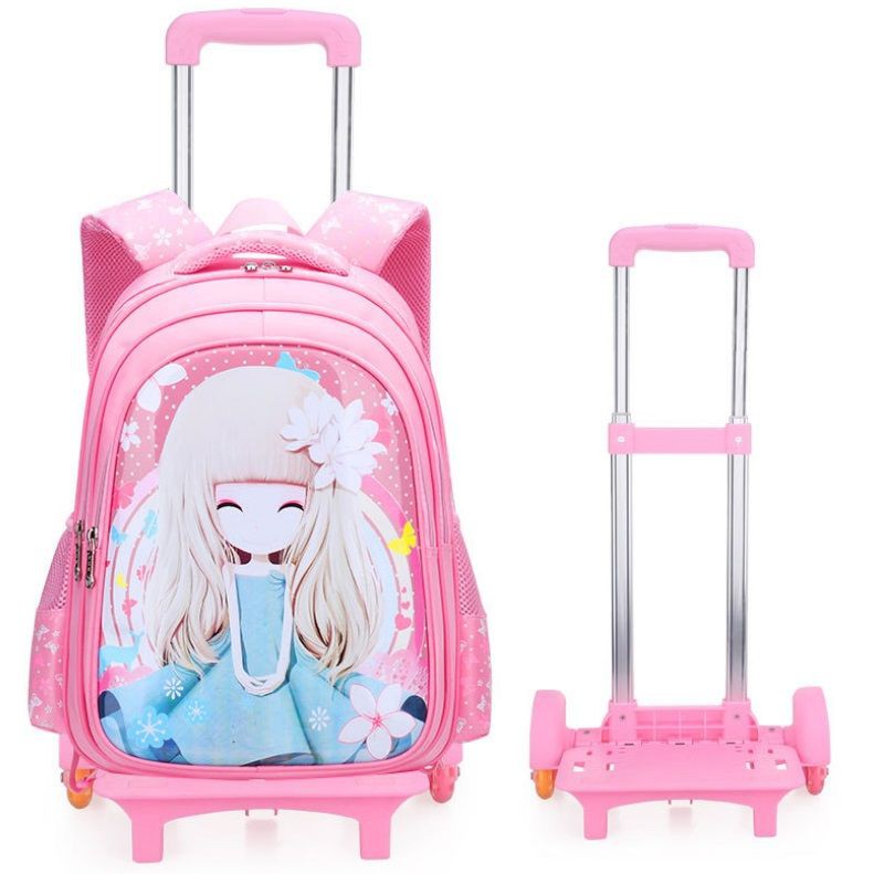 Ba lô chân kéo học sinh cấp 1-Hinh bé gái dễ thương-Hồng-Chân Cao