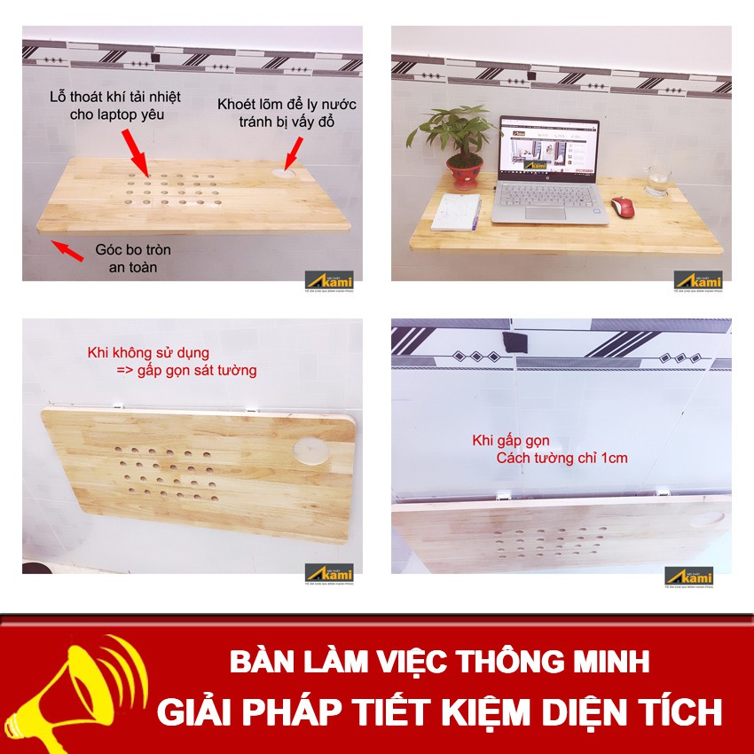 Bàn laptop MÙA NẮNG NÓNG 40x80 gỗ tự nhiên gấp gọn bản lề chịu lực 60kg