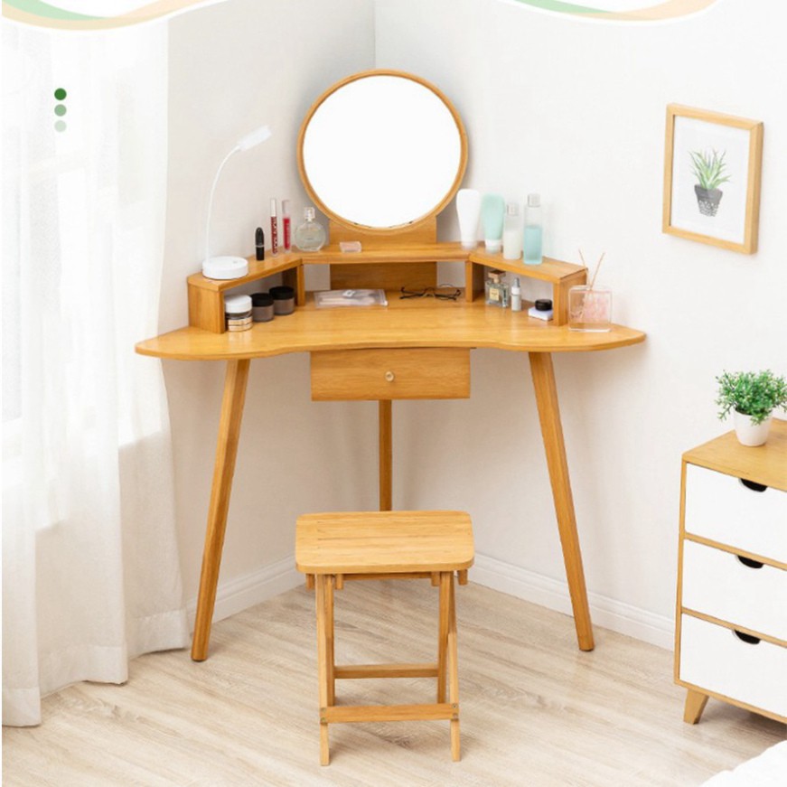 Bàn trang điểm có gương để góc thông minh bằng gỗ tre tự nhiên cao cấp, siêu tiết kiệm diện tích