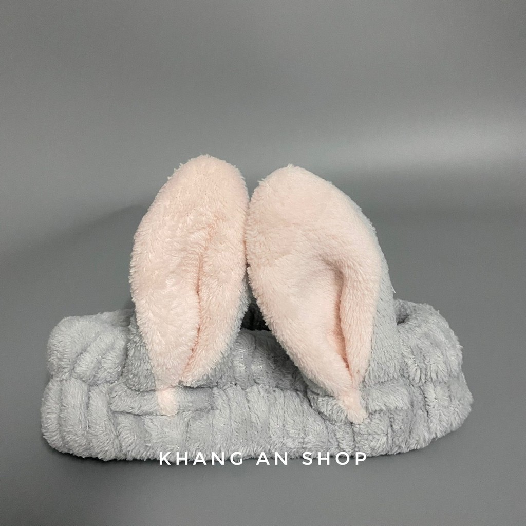 Băng đô turban rửa mặt - trang điểm hình tai thỏ vải nhung mềm 3D