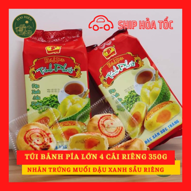 Bánh Pía Đậu Xanh Sầu Riêng Tính Phát Túi Đỏ 350g ( 4 cái/Túi) - Đặc sản Sóc Trăng chất lượng đảm bảo vệ sinh thực phẩm
