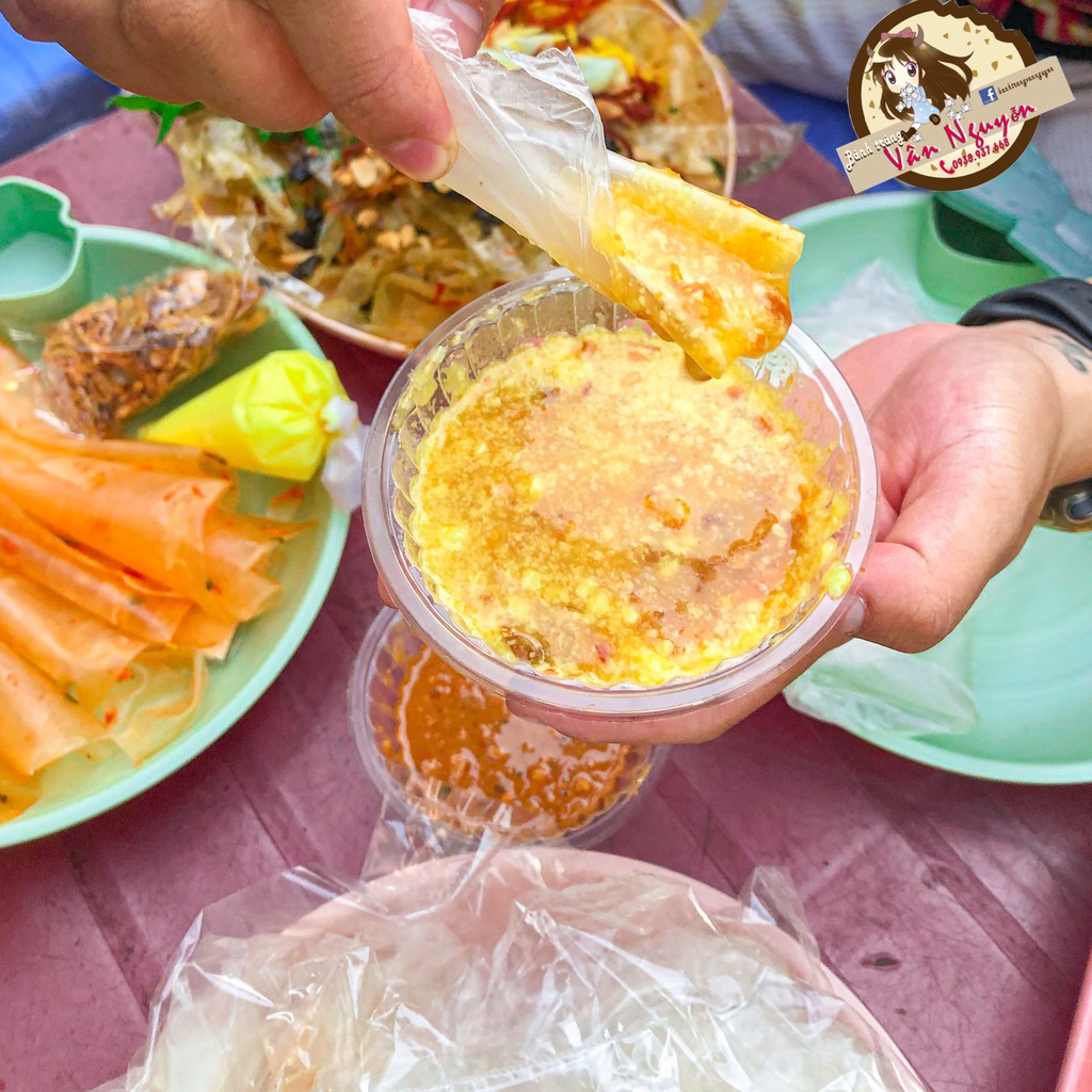 Bánh tráng phơi sương chấm sốt me bơ hành phi đậu phộng. Bánh tráng Vân Nguyễn