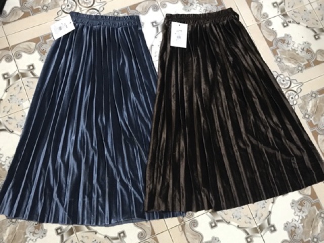 Chân váy nhung dập li, váy nhung dài, chân váy dài