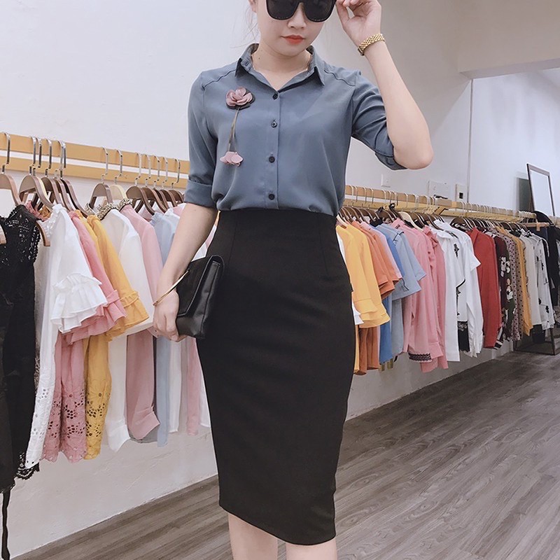 Chân váy bút chì công sở dáng ngắn ôm body xẻ tà sau chất Umi đẹp co giãn thoải mái m555