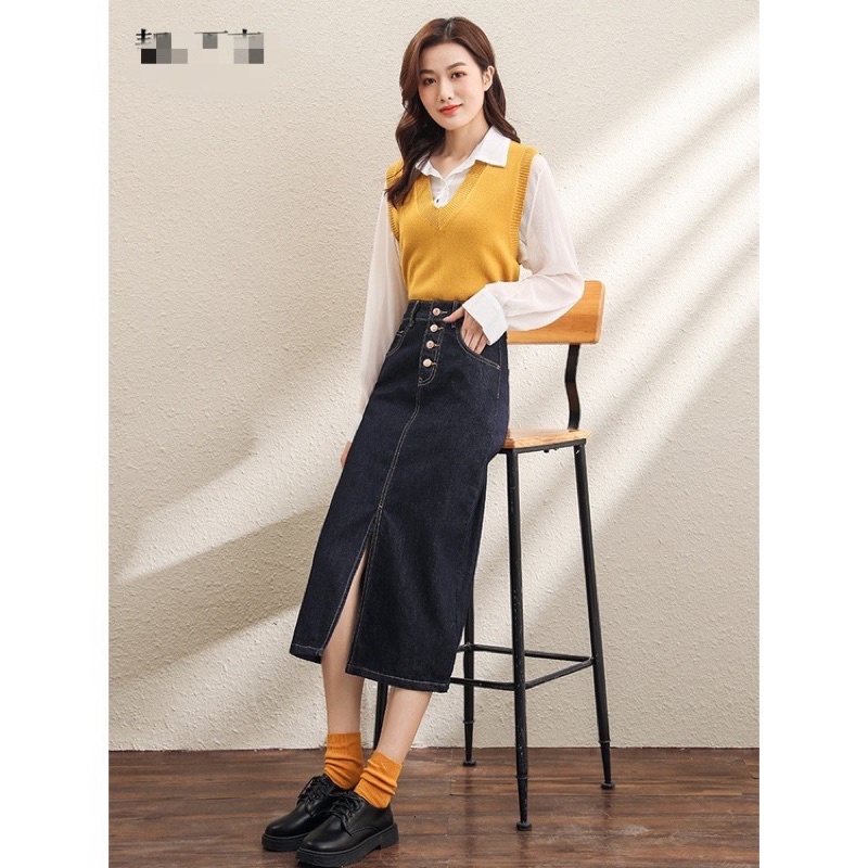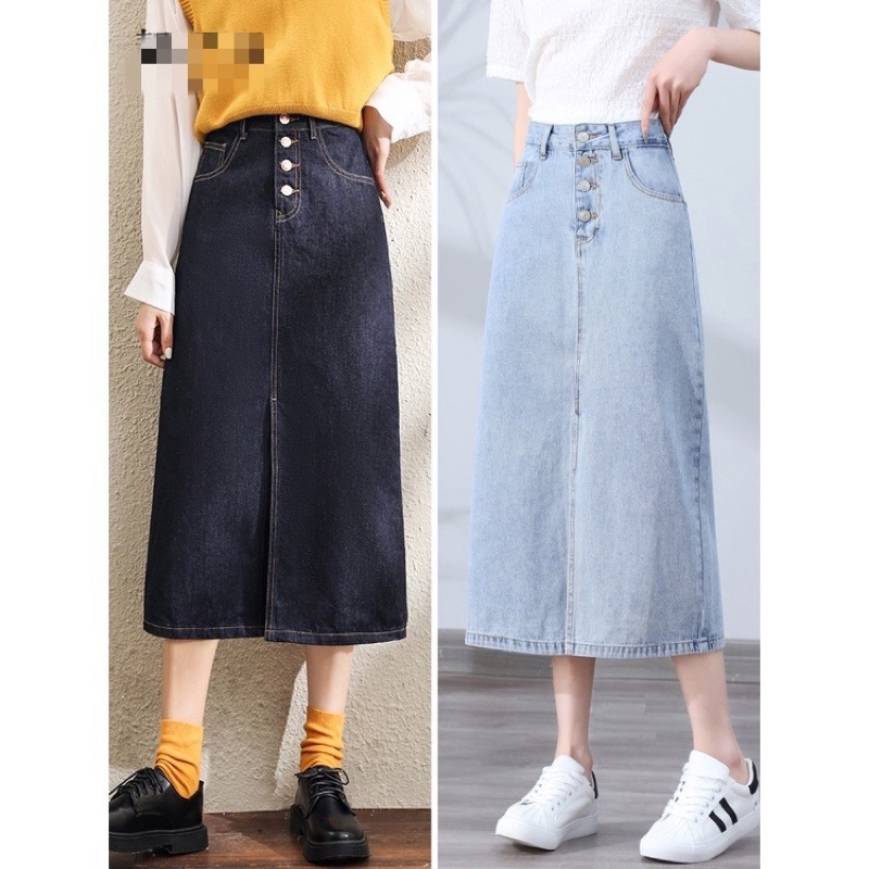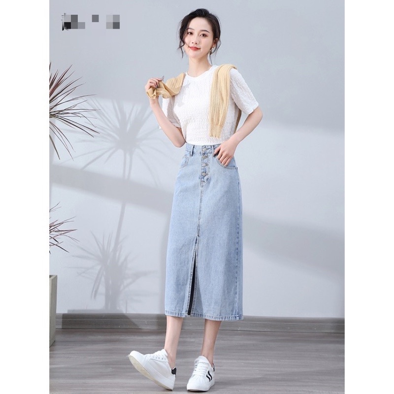Chân Váy Jean Xẻ Trước, Chân Váy Dài Dáng A_A2