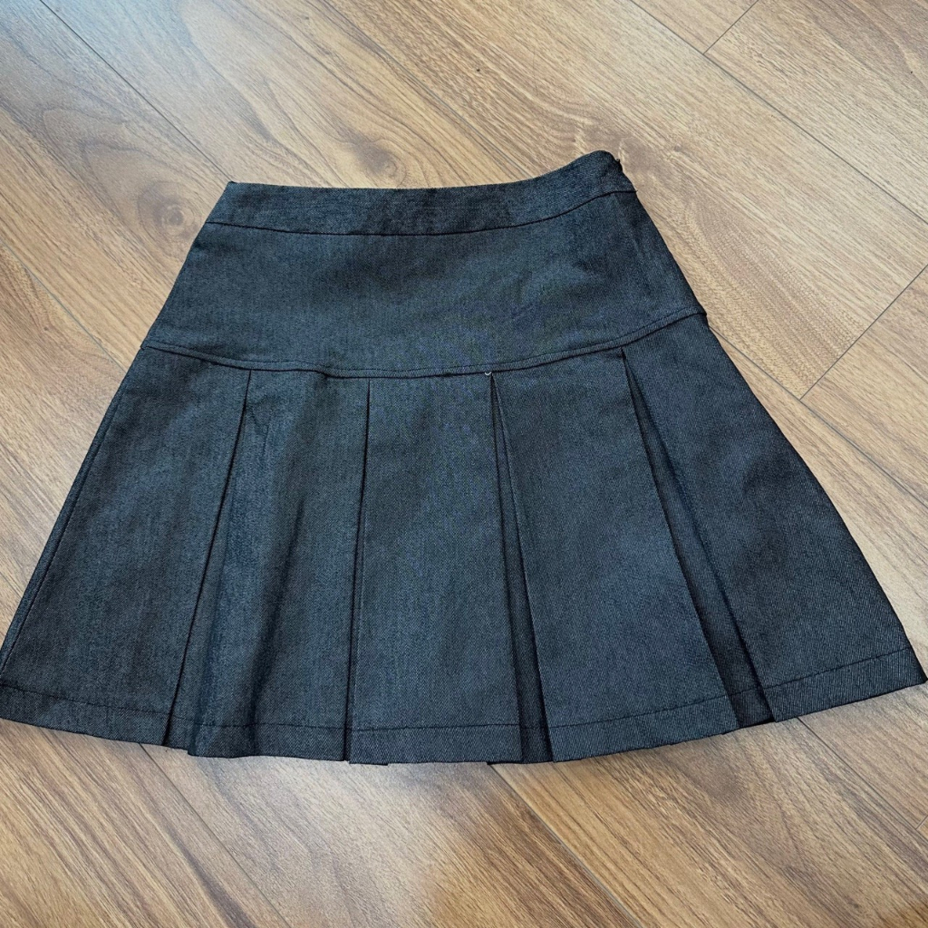 Chân váy xếp ly to, Chân váy nữ cạp cao, Chân váy jean vải dày dặn Miho House