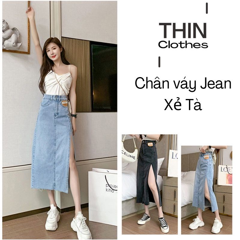 Chân váy bò xẻ tà dáng dài chân váy jean