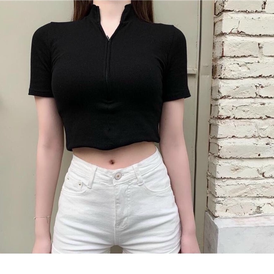 ÁO MỚI- Áo croptop KHOÁ KÉO GIỌT LỆ TAY NGẮN dáng ôm, áo thun croptop