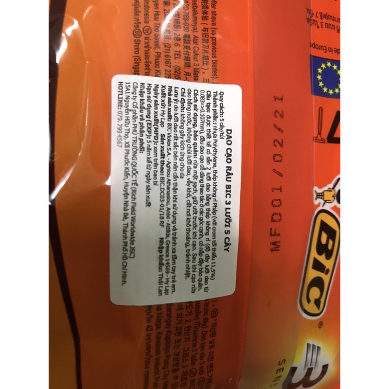 Bịch 7 Cái Dao Cạo Râu Tiện Lợi BIC 3 Lưỡi Chính Hãng