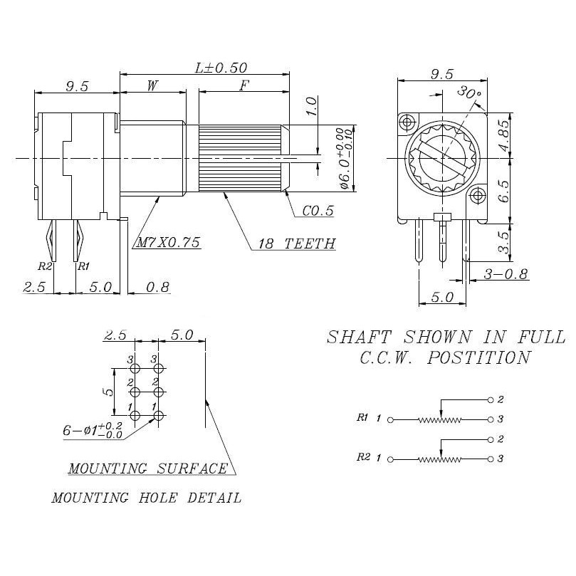 Biến trở Volume đôi RK097G 6 chân 15mm [HTE Quy Nhơn CN2]