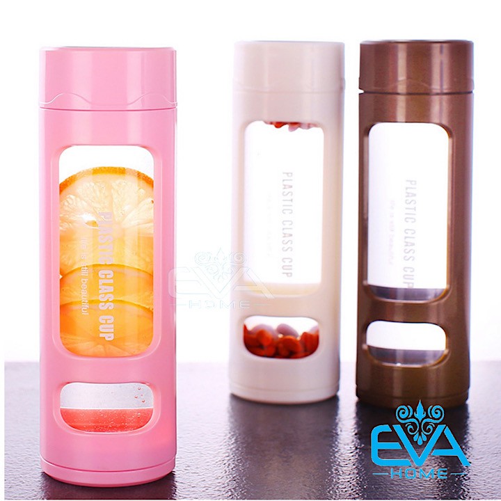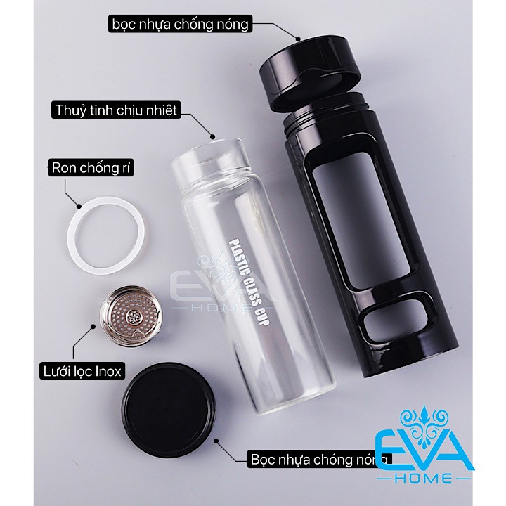 Bình Đựng Nước Thủy Tinh Chịu Nhiệt Kèm Lưới Lọc Và Vỏ Bọc Nhựa Chống Nóng 420 Ml BGN06