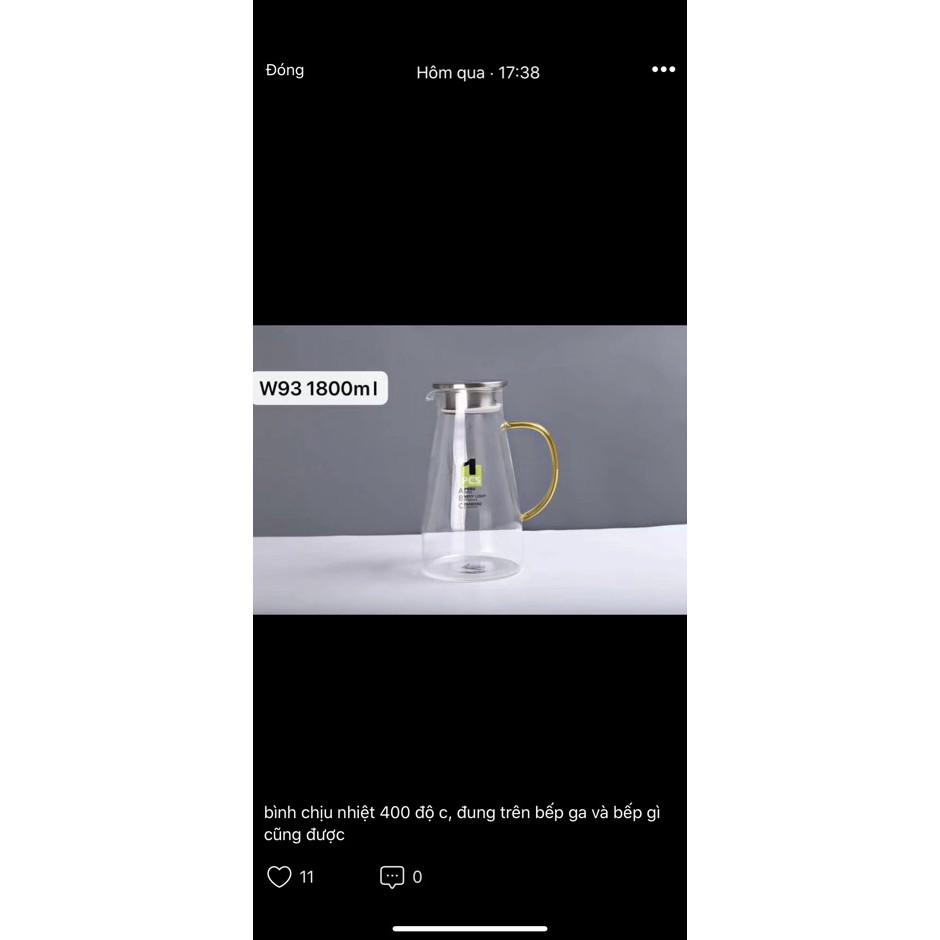 Bình nước thuỷ tinh siêu chịu nhiệt 400 độ c cao cấp 3 cỡ 1 lít 1,4 lít,2 lít