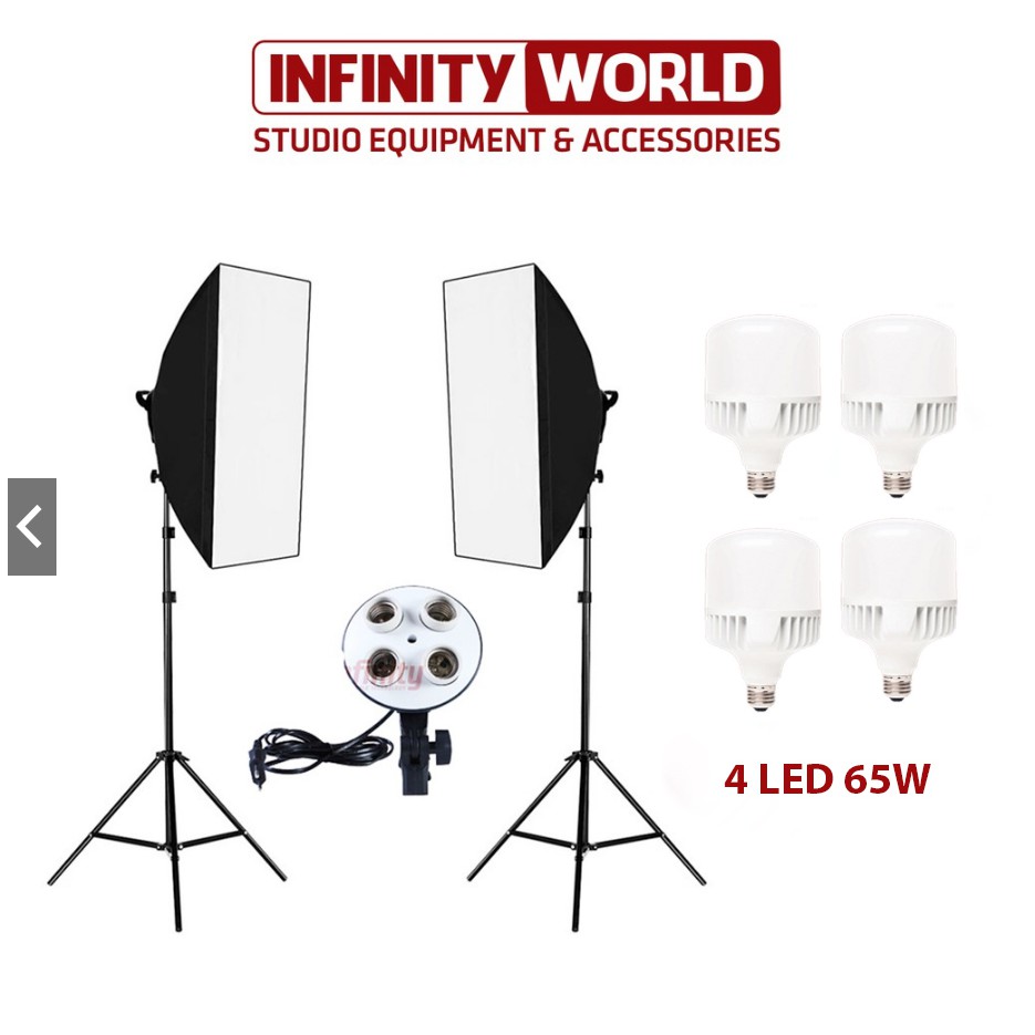 Bộ 2 đèn softbox chụp sản phẩm, livestream chuyên nghiệp đui 4 bóng E27