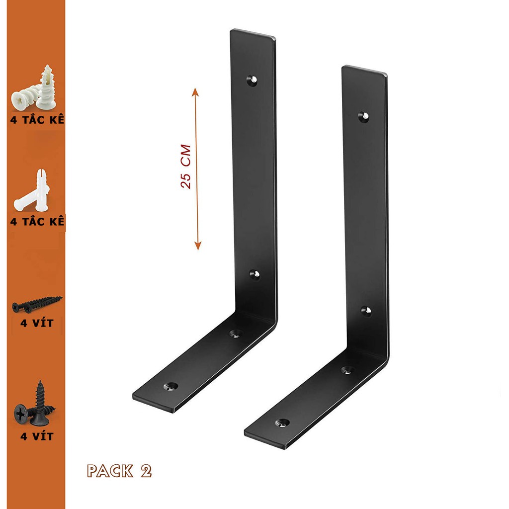 Bộ 2 giá đỡ chữ L ke bàn treo tường bằng thép phủ sơn tĩnh điện, kèm phụ kiện vít tắc kê