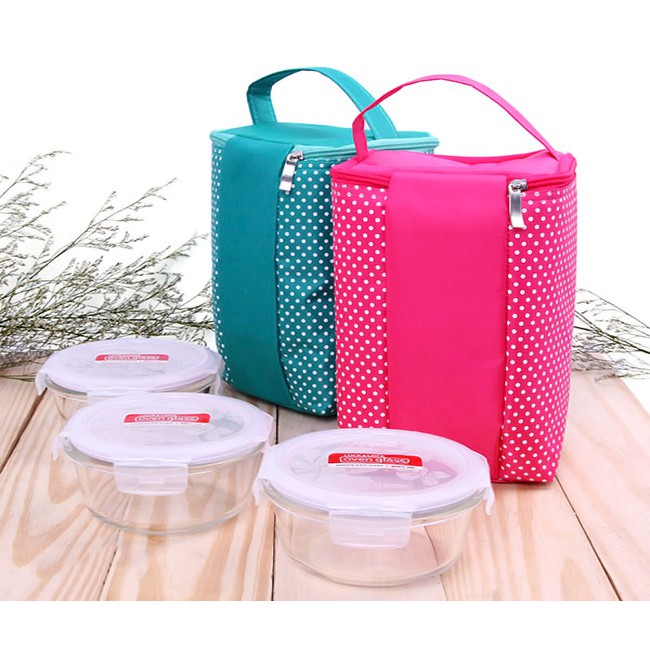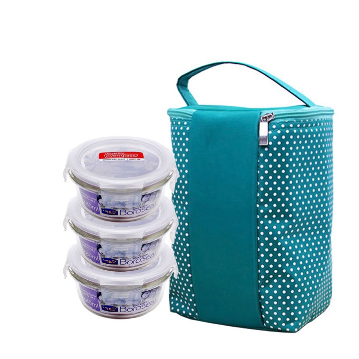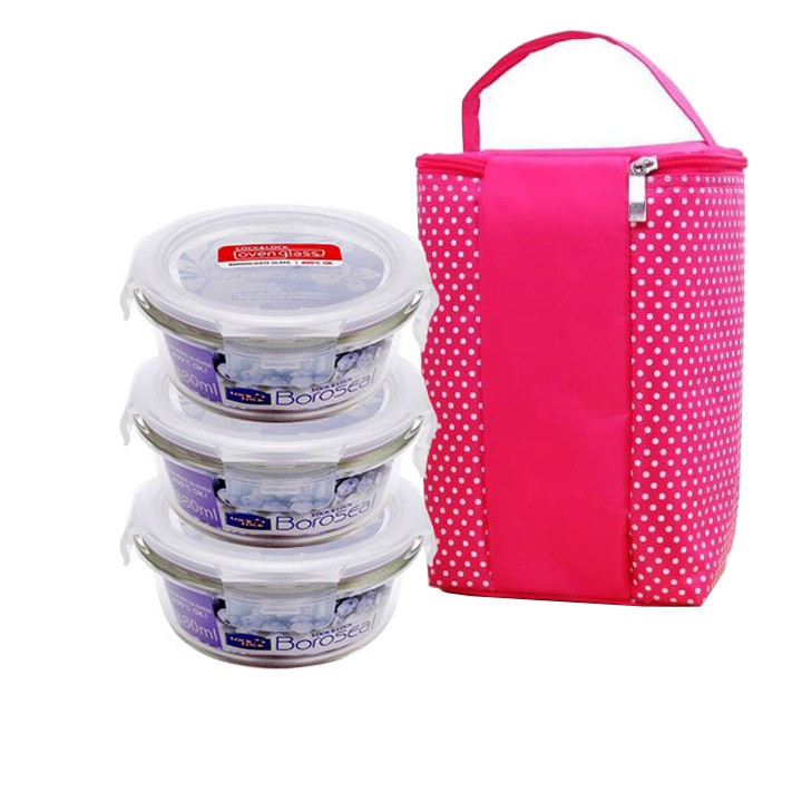 Bộ 3 thố thủy tinh Lock&Lock 380ml tặng túi giữ nhiệt