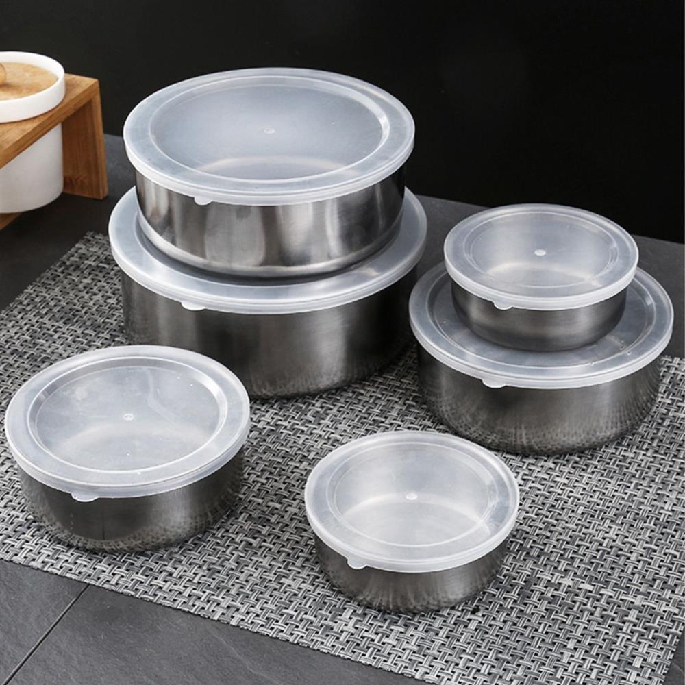 Bộ 5 hộp bảo quản thực phẩm Inox hình tròn Nắp chống tràn đựng thức ăn 20018