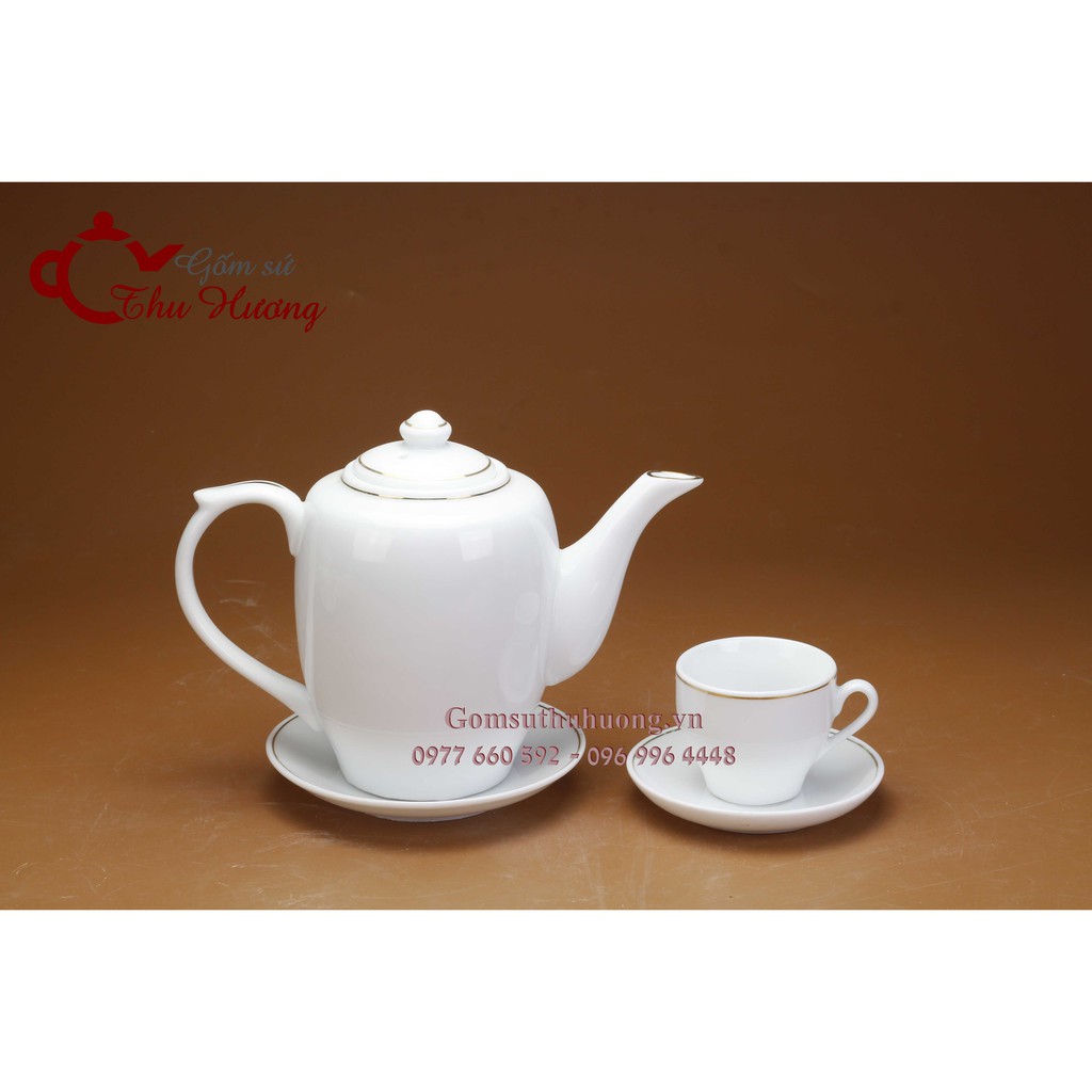 Bộ ấm chén Bát Tràng_Bộ bình trà dáng Cao vàng kim (ấm 800ml)