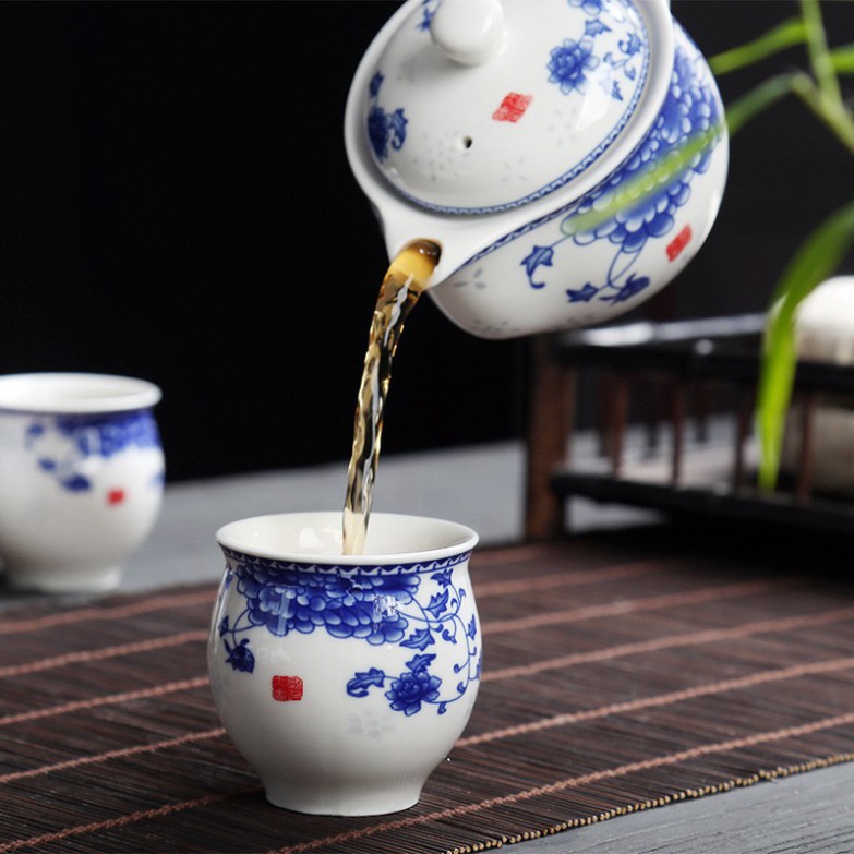 Bộ ấm trà gốm Bát Tràng men rạn họa tiết bông hoa