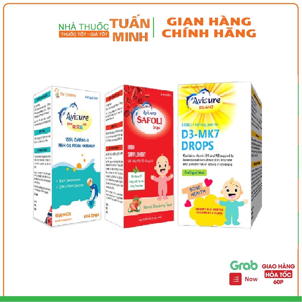 Bộ ba vi chất Avisure nhỏ giọt thiết yếu cho bé - Avisure DHA, sắt Safoli drop, vitamin D3-MK7