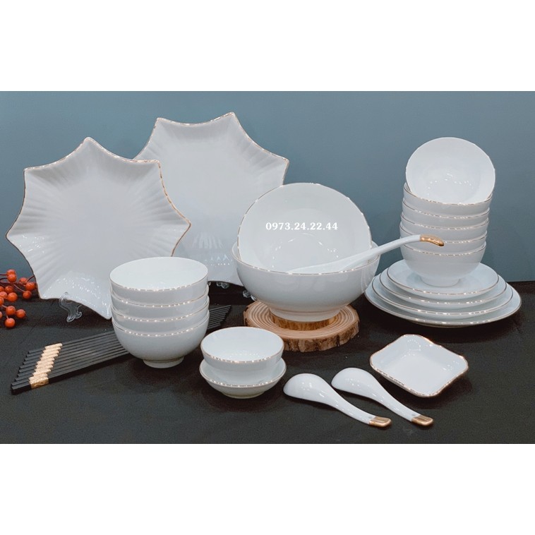 BỘ BÁT ĐĨA SỨ BÁT TRÀNG CAO CẤP CHÉN ĐĨA ĂN ĐẸP