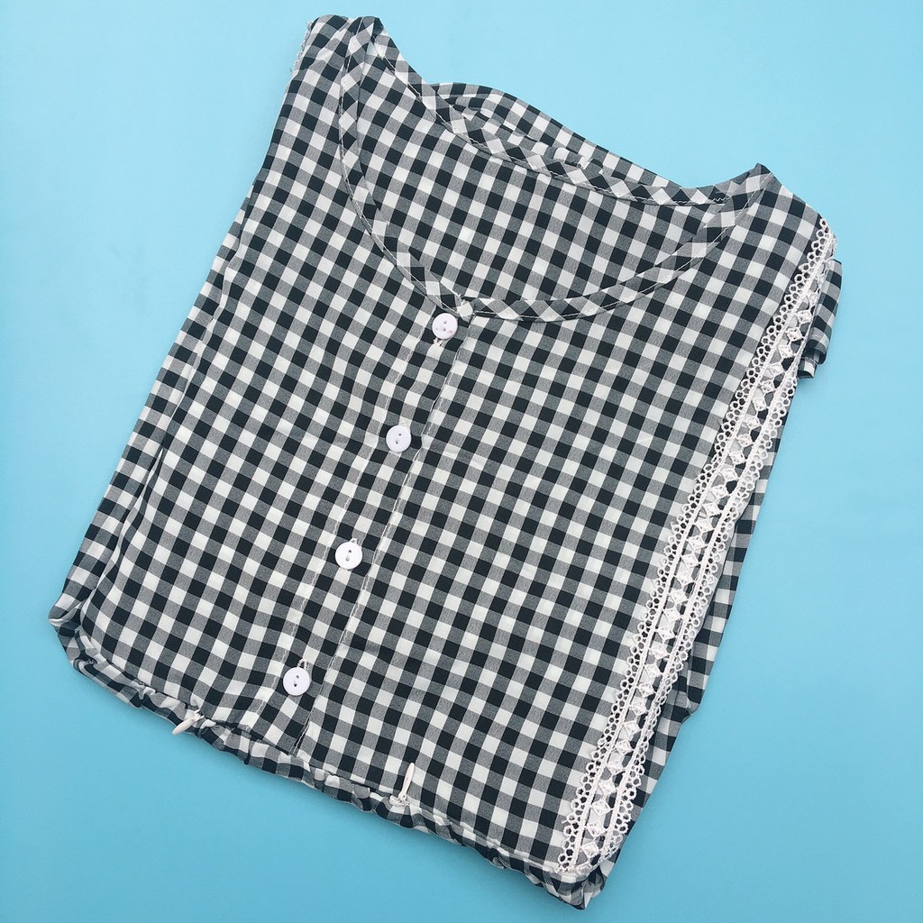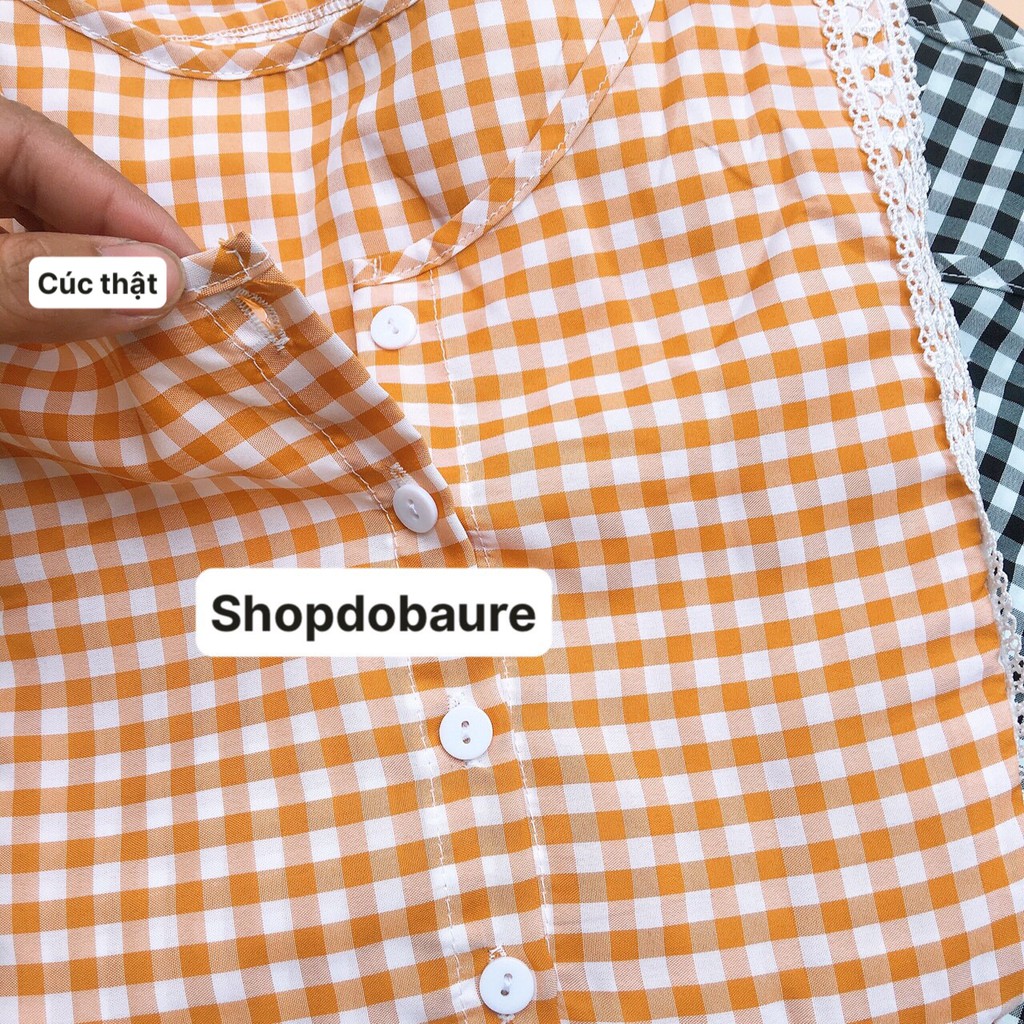Bộ bầu và sau sinh LỬNG kẻ caro, kéo khóa cho bé bú, dáng babydoll cho mẹ bầu mặc nhà mùa hè - 𝐁𝐋𝟏𝟒