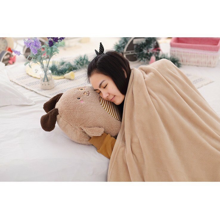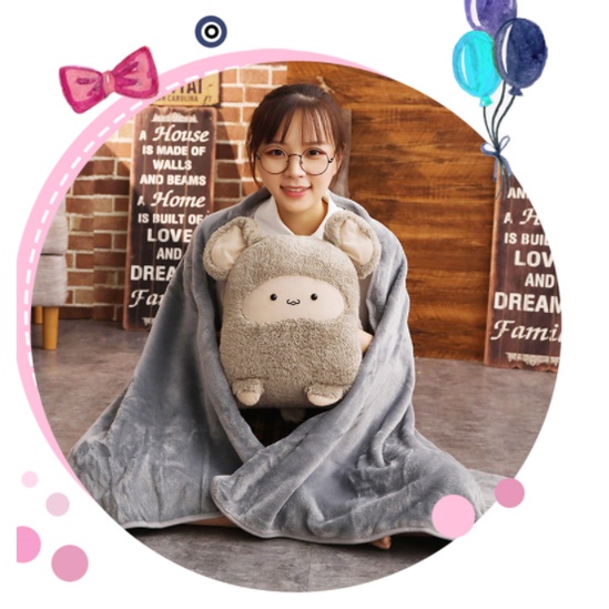 Bộ chăn gối thú bông tròn lông xù có ủ tay chăn lông 2 mặt siêu dễ thương