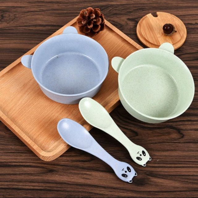 Bộ chén muỗng ăn dặm lúa mạch hình gấu panda dễ thương