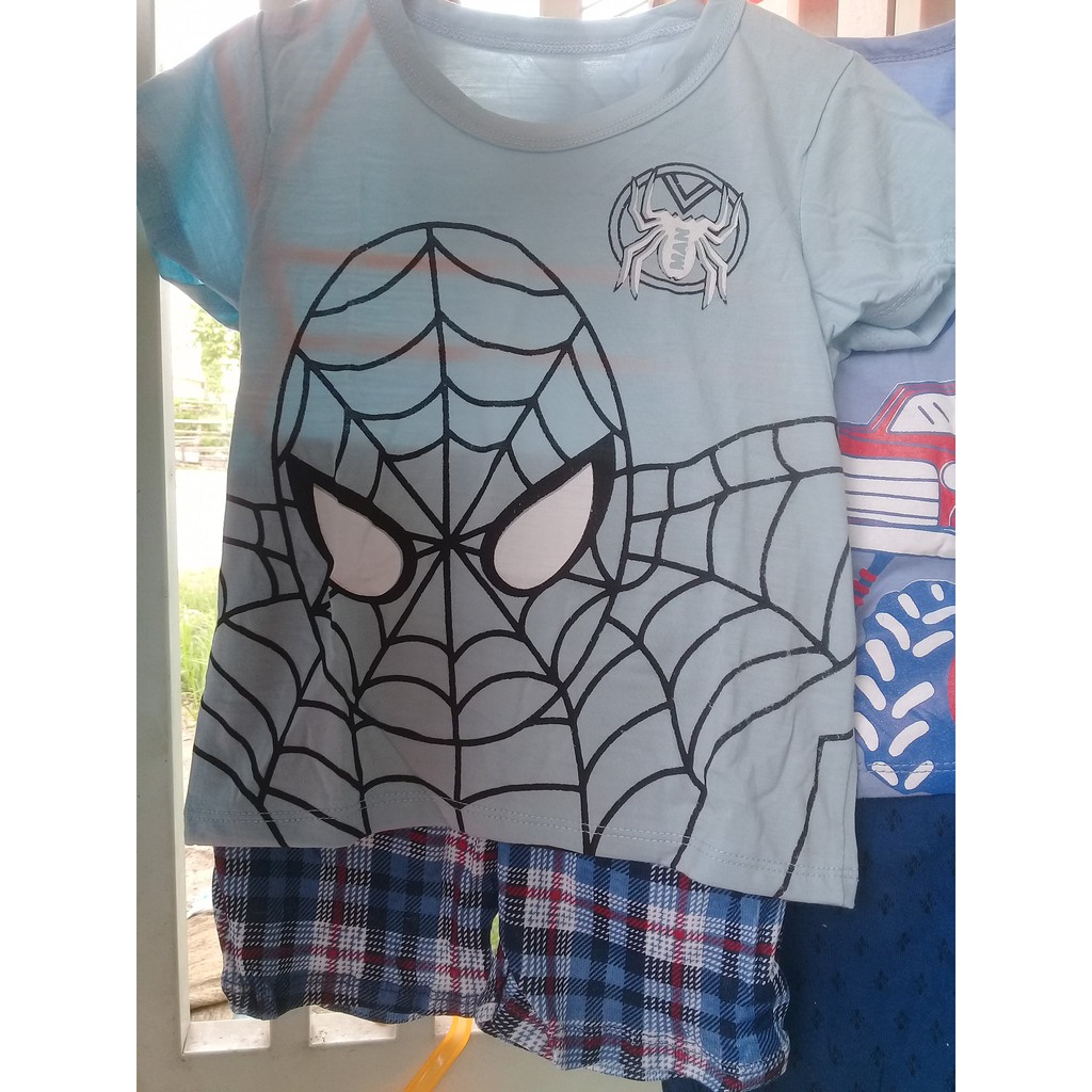 Thanh lý Bộ cotton cộc tay in nhiều hình ( ẢNH THẬT)ô tô, người nhện và siêu nhân cho bé trai 9kg đến 22kg