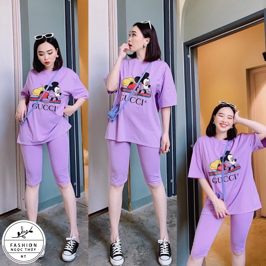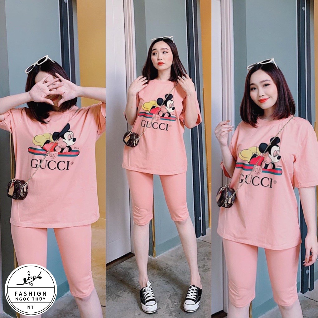 Bộ Cotton Giá Rẻ ❤️FREESHIP❤️ Bộ Quần Áo Nữ Mùa Hè Bộ Lửng Micky