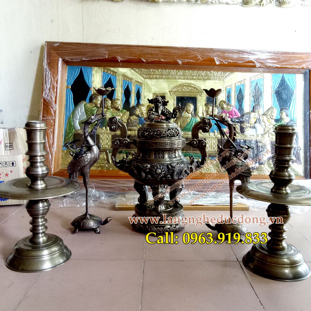 bộ đỉnh đồng ngũ sự song long cao 50cm giả cổ, đỉnh đồng thờ cúng